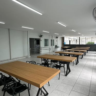 Setor Social: refeitórios, sala de TV e cinema, pátios, jardim, capela e espaços de convivência.